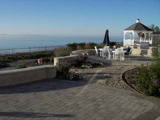![]() From the Master Patio, stroll along the path to the seat-wall flanked Main Patio. Its BBQ counter features all stainless steel BBQ, 2-purner gas stove top, refrigerator, and deep sink for icing beverages. There's room to entertain friends in a beautiful setting that tops the best commercial venues Santa Barbara offers. And that's saying a lot. |