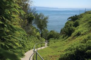 The balcony with its clear glass and stainless steel railing offer magnificent views of the Santa Barbara Channel Islands, white water beaches and viewing the Sea Lions that sun themselves on the rocks below. |